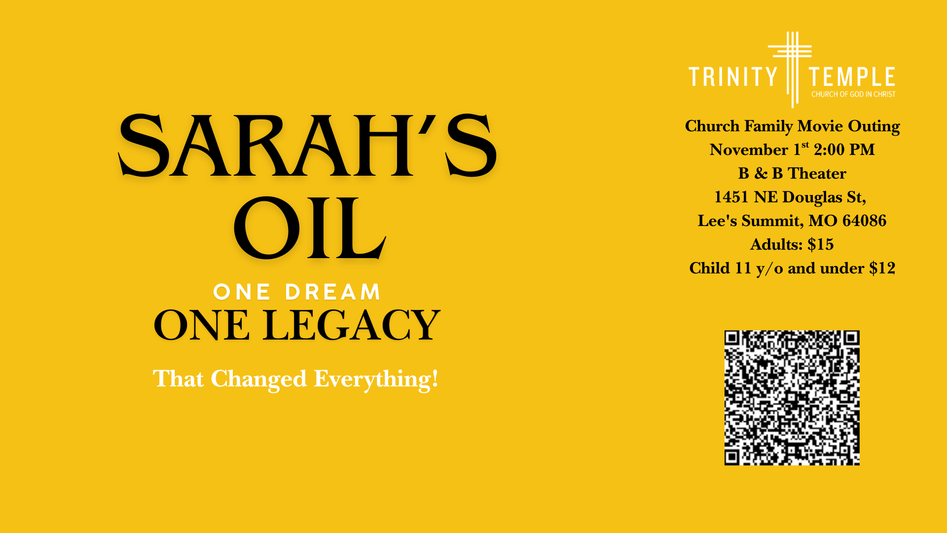 CliJoin us on November 1st at 2:00 PM, we’re going to the movies to see Sarah’s Oil. Click on Register now for preview.