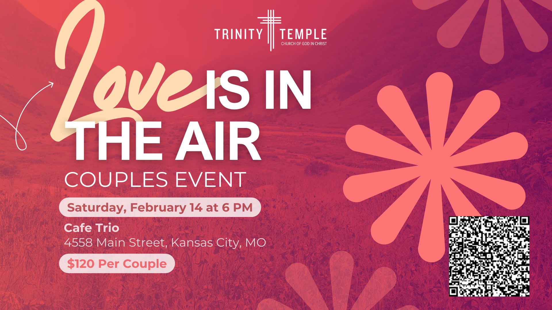 Calling all couples to come out and Join the Marriage ministry for a special Valentine’s Dinner celebration with an elegant and romantic evening on February 14th at the Cafe Trio. Love is in the Air!