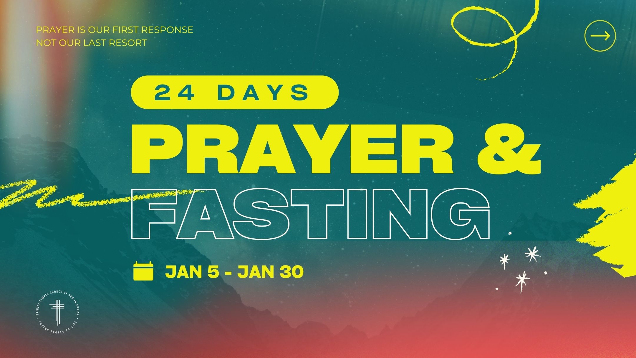 Start the year focused, renewed, and aligned with God. Join Trinity this January as we come together in prayer and fasting—seeking God’s direction, strength, and purpose for the year ahead. You’re invited to join us.
